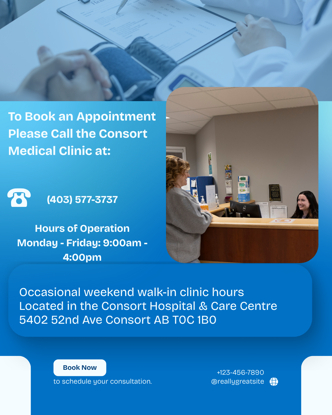 To Book an Appointment Please Call the Consort Medical Clinic at: